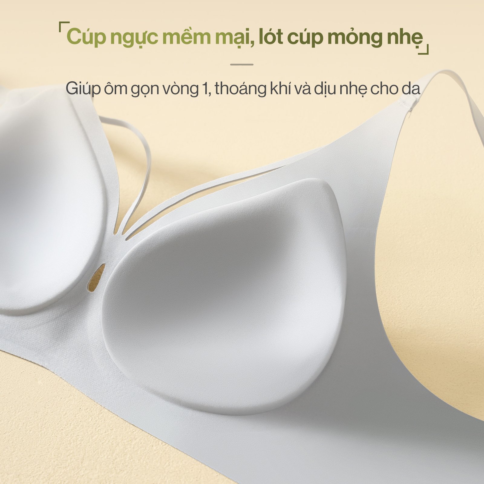 A: Không đâu ạ. Gọng mềm bám theo đường cong ngực, không hằn, không khó chịu.