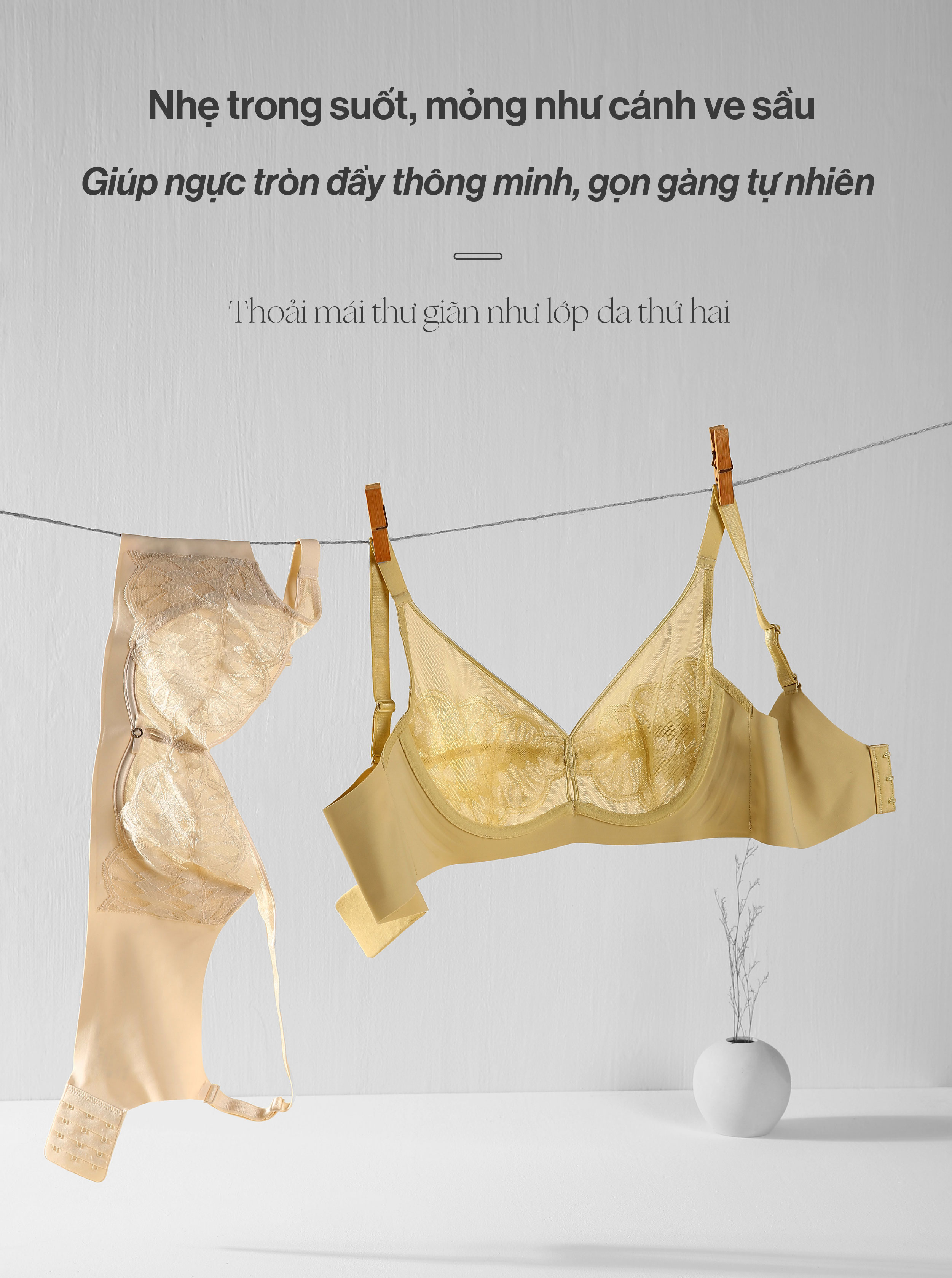 Mút siêu mỏng, thoáng khí, tạo hiệu ứng ôm ngực nhẹ, phù hợp người không thích áo độn dày.