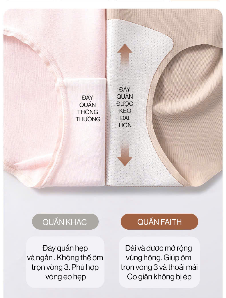 Faith BLOVELAN – Quần lót kháng khuẩn 10A Freesize: mỏng nhẹ – không viền – kháng khuẩn – thoáng khí. Sự lựa chọn hoàn hảo cho nàng hiện đại, mặc bất cứ nơi đâu.