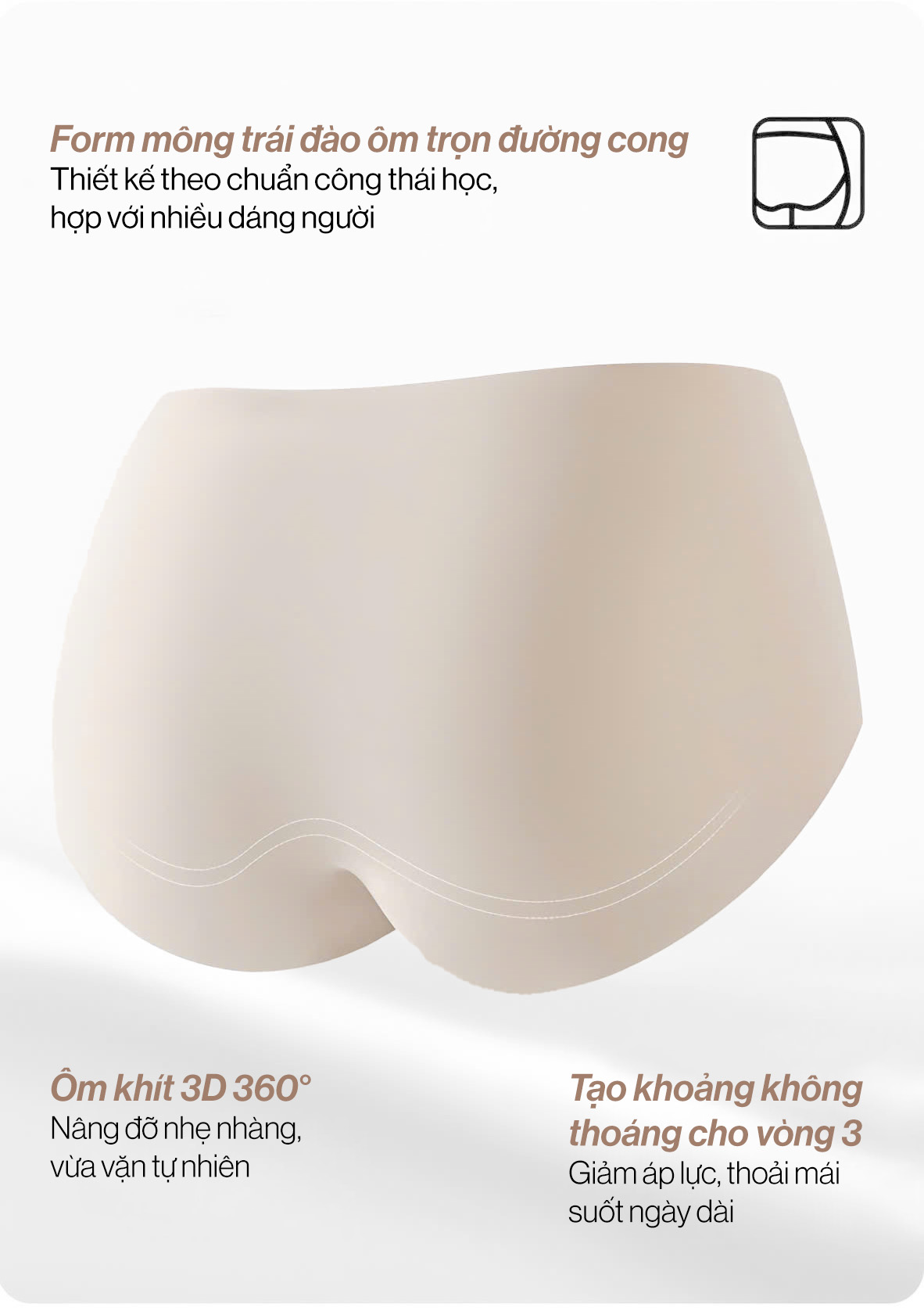 Thiết kế không viền → mặc đồ ôm sát (jum, đầm body, gym, yoga, bơi lội) vẫn tự tin không lo lộ dấu hằn.